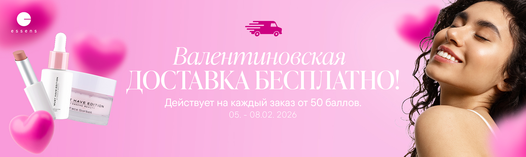 Покупайте в рамках валентиновского предложения на выгодных условиях и получайте бесплатную доставку на каждый заказ от 50 баллов.